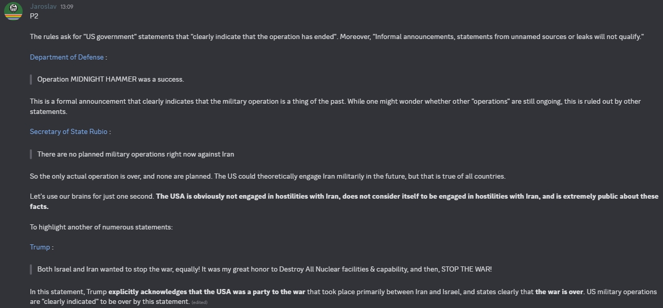 In the previous section, we covered the key elements of a strong discussion argument. For example, effective arguments often include evidence, references to the resolution criteria, and consideration of precedents or opposing viewpoints. In this section, we'll look at an example of a strong resolution argument and break down why it works.