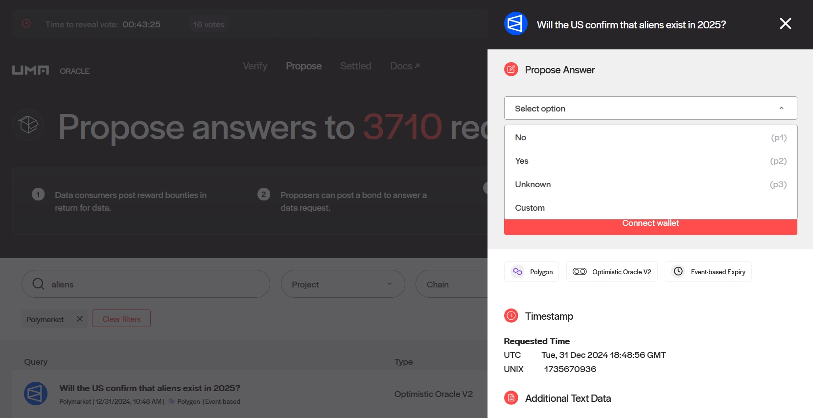 Go to the market rules and click Propose resolution.